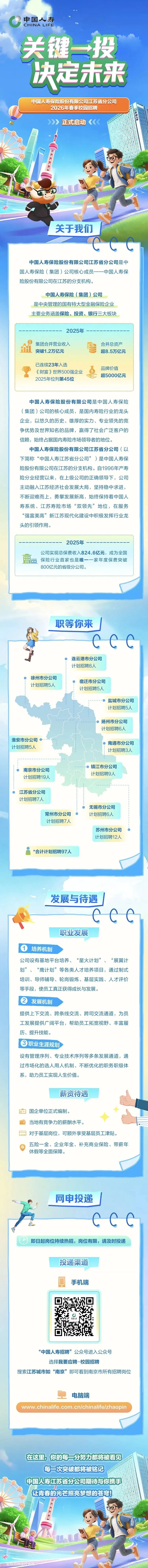 >世界500强 | 中国人寿保险股份有限公司江苏省分公司2026年春季校园招聘