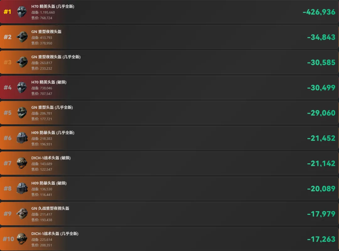 No2. 头盔假账排行