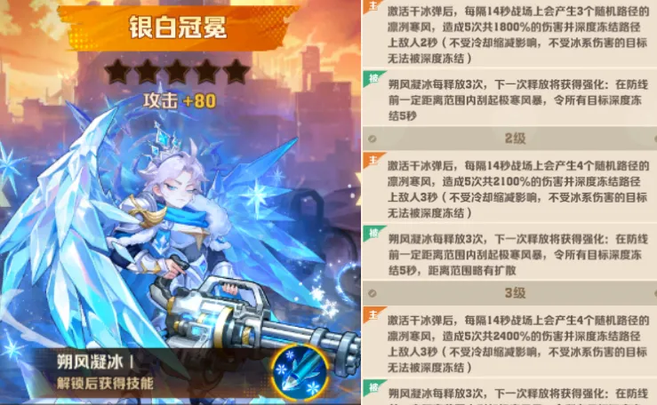 这款皮肤主打负面效果延长,主动深度冻结时间从两秒变六秒,被动从五秒变15秒,还能冻住所有一次狂暴BOSS,虽然二次狂暴冻不住,但在210关前非常强势,230关后可能稍显乏力,但300关后又能反超。