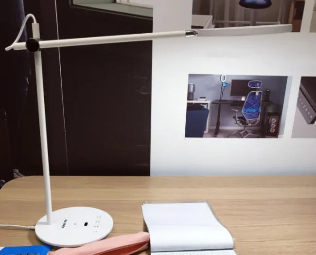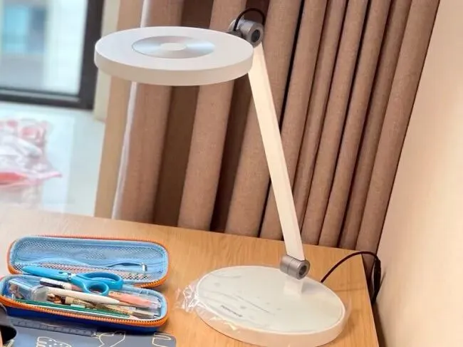 儿童护眼灯推荐哪款?好视力TG035台灯是一款以圆形发光面为主的护眼灯,采用了RG0无蓝光危害的灯珠,有效减少了蓝光对眼睛的伤害。同时紧凑的整体设计意味着它不会占用桌面太多空间,尽管其发光面直径仅为14cm,可能导致光照面积不是特别广阔,但其智能功能表现尚可,包括智能调光、番茄时钟以及延时关灯功能。不过整体的阻尼感不是那么在线,用了一段时间后就会出现的灯头低下来的现象。