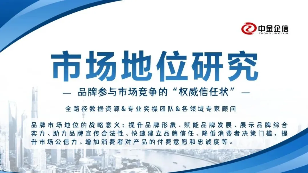 市场地位声明服务是由第三方权威机构中金企信国际咨询为品牌参与市场竞争中提供销量(第一/领先)、占有率排名、开创/首创、好评率、满意度、复购率、用户数量、门店数量、技术与其他竞争优势及影响力等进行的论证评价的品牌市场地位咨询服务。品牌市场地位的核心意义为,提升品牌形象、赋能品牌发展、展示品牌综合实力、助力品牌宣传合法性、快速建立品牌信任、降低消费者决策门槛。