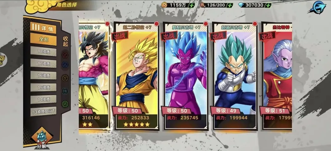 作为主角,孙悟空多次身陷绝境,且在前往那美克星的飞船上,为激活赛亚人被动故意重伤自己并服用仙豆,累计食用11颗。
