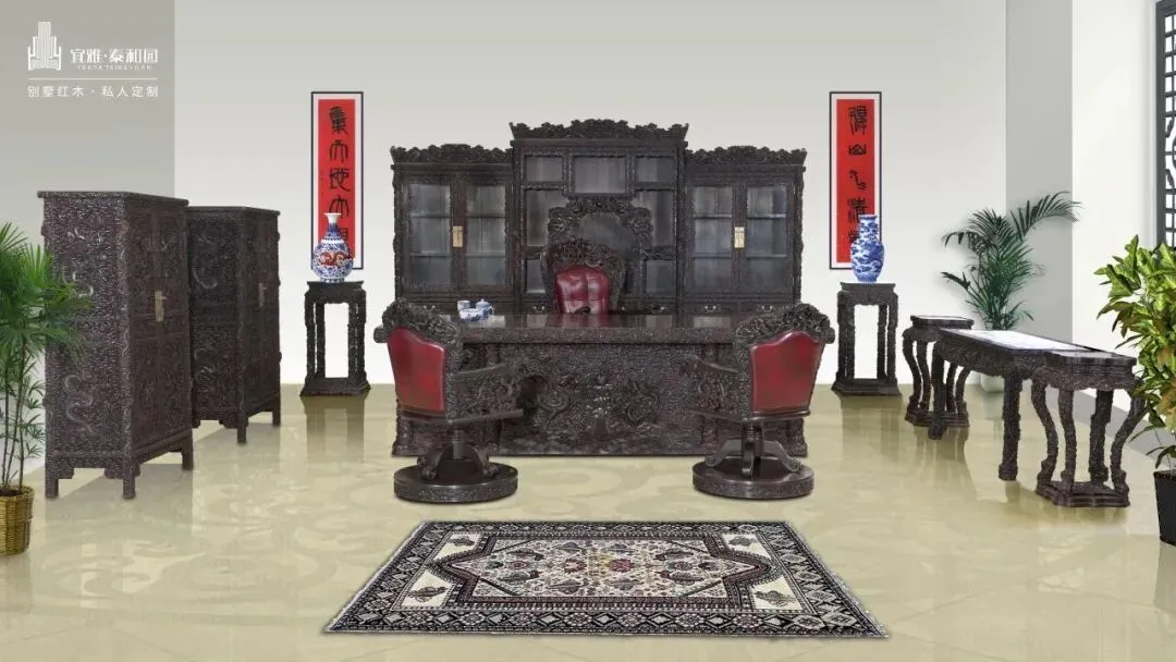 泰和园源自深圳,主打小叶紫檀家具,采用“丝翎檀雕”技法,产品融入儒家文化和“天人合一”理念,有《梅兰竹菊》等经典系列,注重品质与艺术结合,适合追求高品位人群。
