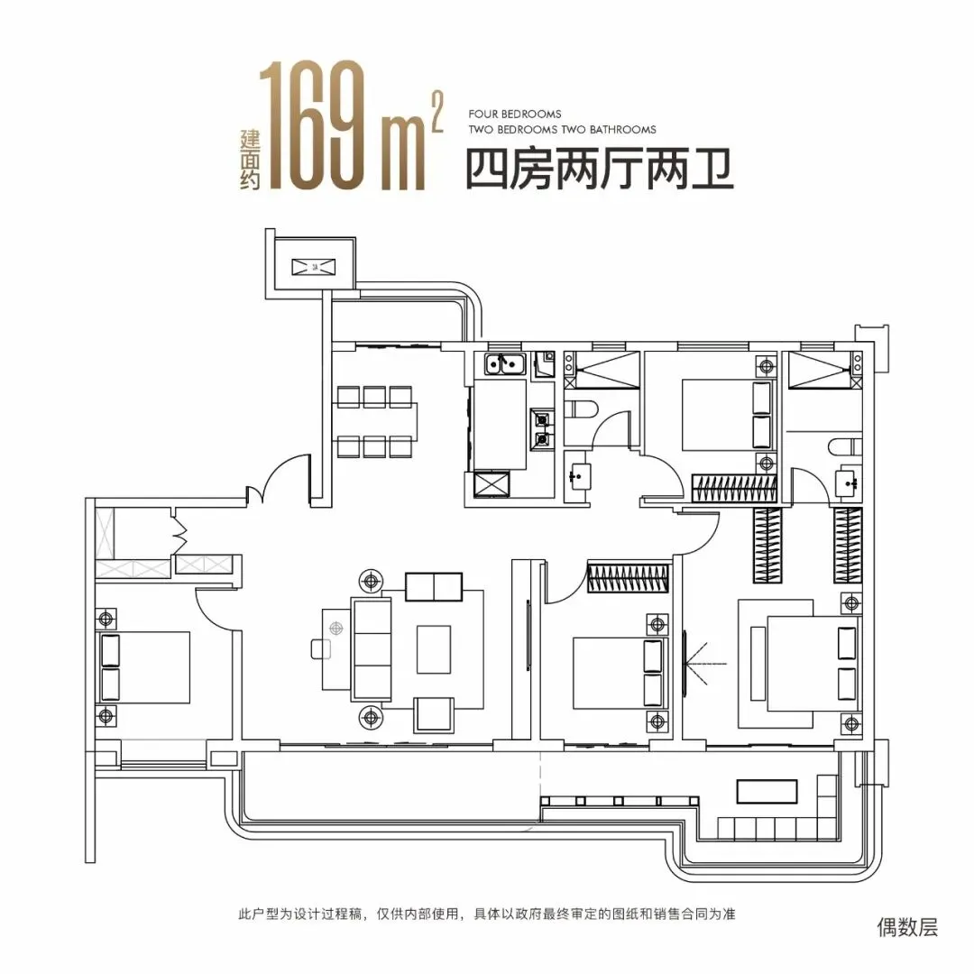 户型面积段:建面约143㎡/169㎡/198㎡立体生态住宅