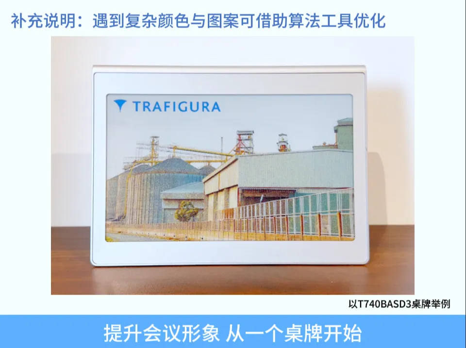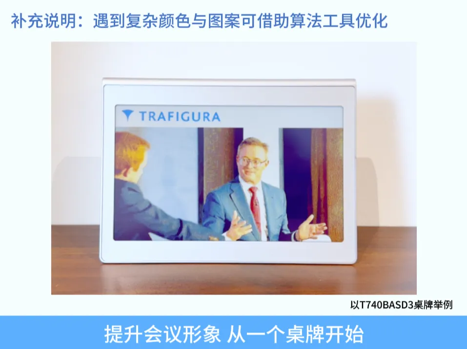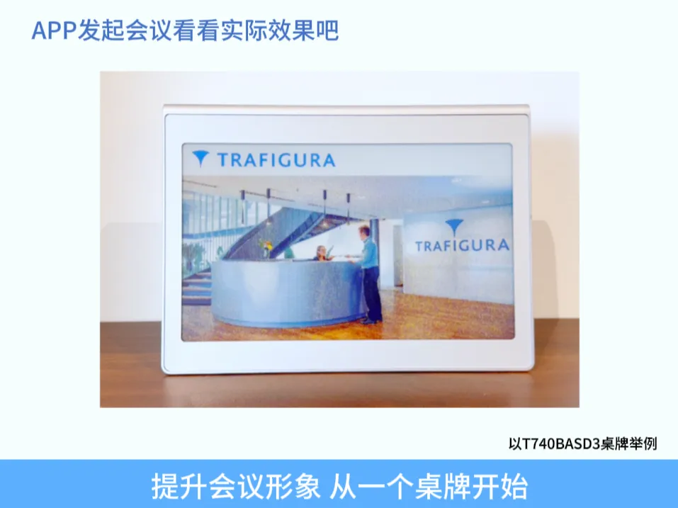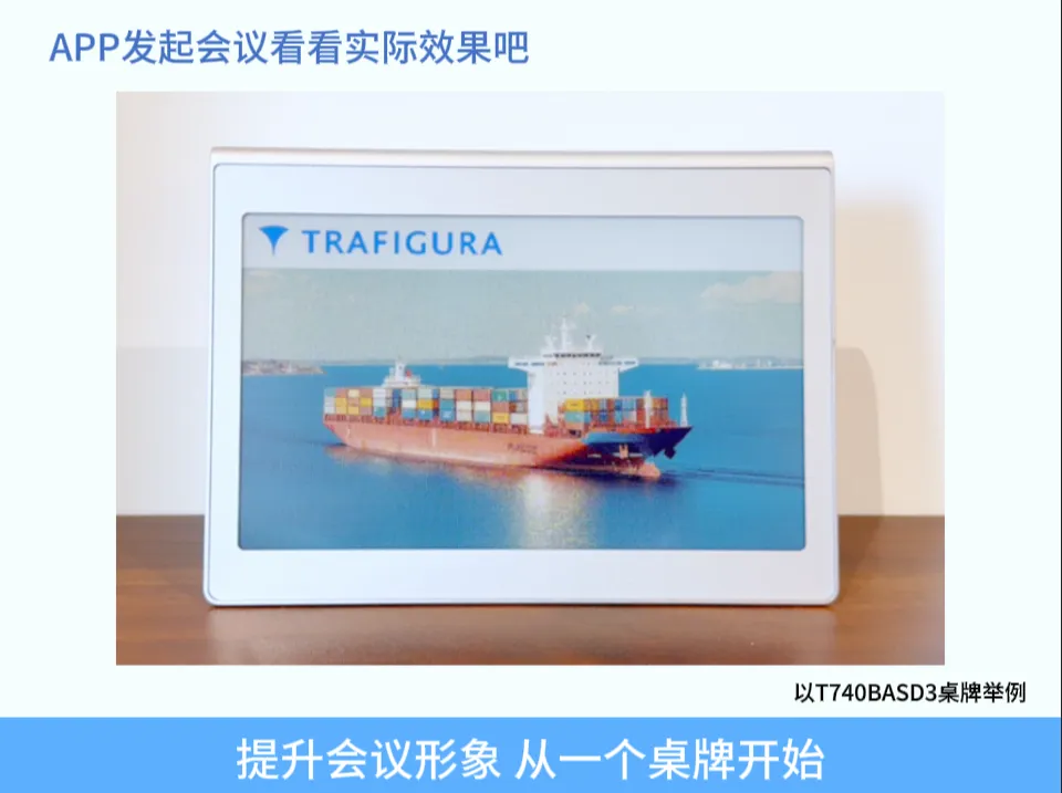 墨水屏电子智慧桌牌实拍,将高端商务质感与数字化科技完美融合。作为全球知名企业的品牌展示载体,墨水屏类纸护眼、高清细腻的显示效果,精准还原 logo 色彩与细节,视觉简洁高级。区别于传统纸质桌牌,它低功耗更环保,适配会议、办公、企业展示等多场景,既彰显世界 500 强企业的品牌格调,又践行无纸化智慧办公理念,用科技感升级商务展示体验,解锁现代企业办公新美学。