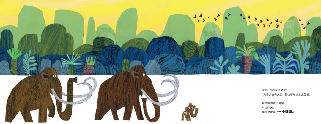 本书为意大利安徒生奖得主杰克·泰塞罗经典作品。故事的主角小猛犸象对自己的生活非常满意。它喜欢山峦、湖泊和家人。但地球上也生活着吵闹的人类。猛犸象爸爸向小猛犸象展示了世界不只属于猛犸象,也属于蒲公英、小黄瓜和闪电。可小猛犸象还是想不通:“为什么会有像人类破坏性这么大的生物?”猛犸象妈妈把他们带到一个山洞,小猛犸象惊呆了:人类可以做其他生物都做不到的事情!