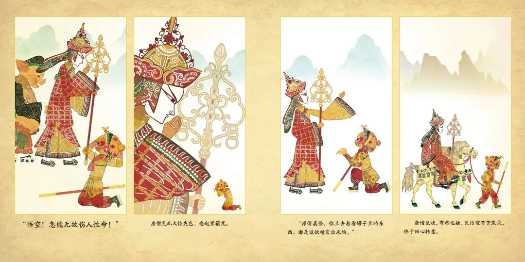 全书画面深度汲取了中国传统皮影艺术的造型精髓与戏曲人物的神态风韵,线条遒劲有力,色彩明快浓烈,角色动态栩栩如生,每一页都宛如一幅活动的光影艺术,为孩子带来前所未有的视觉体验。书中巧妙融入动漫式的分镜与动态设计,静中有动,传统中透着新意。