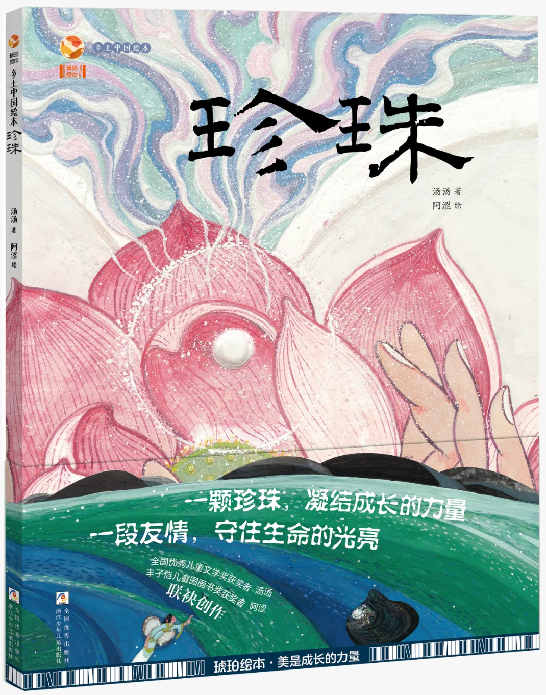 《珍珠》是一本讲述西施与河蚌姑娘之间宝贵友情、并通过友情折射出无常命运中永恒美好的绘本故事。