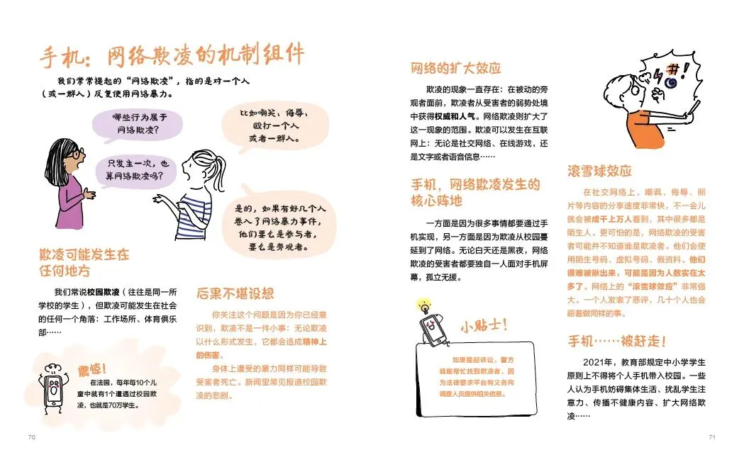 书中穿插问答测试、互动游戏和家庭案例,结合生动插画,让严肃话题变得趣味盎然。作者是青少年媒体教育专家,收集了数十名青少年的真实问题,内容兼具专业性与共鸣感。总之,这不仅是一本帮助青少年管理手机使用的实用指南,更是一本引导他们在数字化时代中健康成长的教育读物。无论是家长、教育者还是青少年本人,都能从中获得宝贵的启示和帮助。