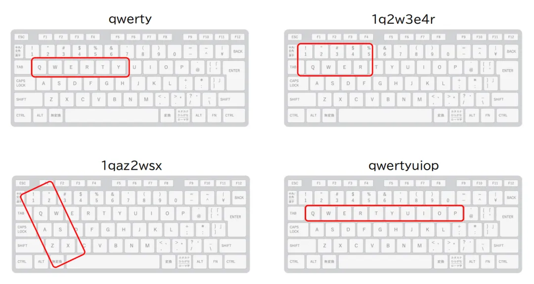 また、4位の「qwerty」は少し複雑に見えますが、実はキーボードの横1列をそのまま打ったものです。8位の「1q2w3e4r」も、キーボードの近いところを打っています。