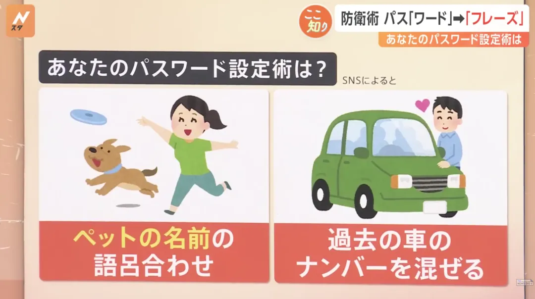 此外,日媒又在社交媒体上调查了大家的密码设置技巧,发现了以下方法:用宠物名字的谐音、混入以前的车牌号、自己喜爱的艺人名字加生日等等。