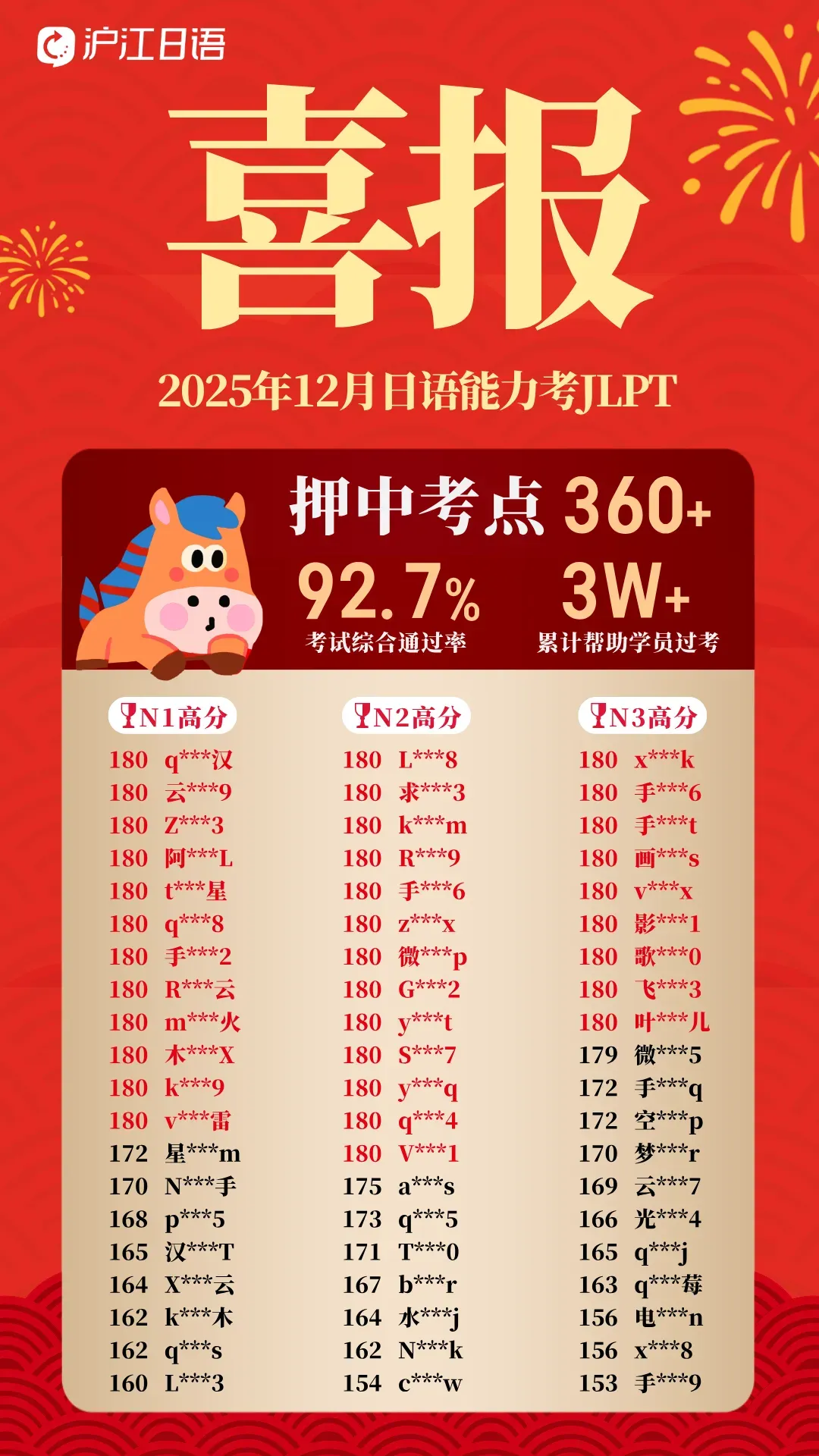 备考干货看累了?来吸吸欧气!沪江日语25年12月 JLPT 喜报来袭:92.7% 通过率 + 360 + 押中考点,帮你把备考弯路走直!