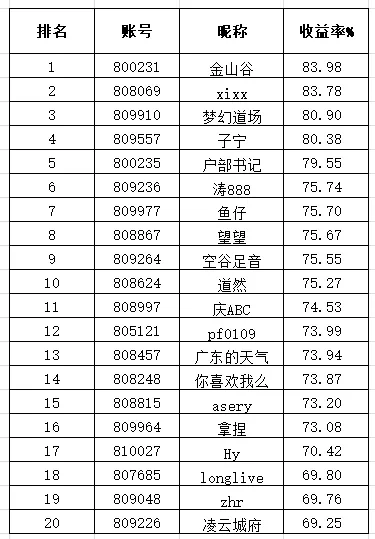 各位会员,皆可通过“会员中 心”查询个人比赛成绩。大作手模拟赛是希望通过交易竞技的方式为外盘爱好者提供一个交易、比拼的平台。不从事任何经营性业务,仅提供交易能力测试的解决方案,参与者在比赛中检验自身的投资策略并有机会获得丰厚的奖励。