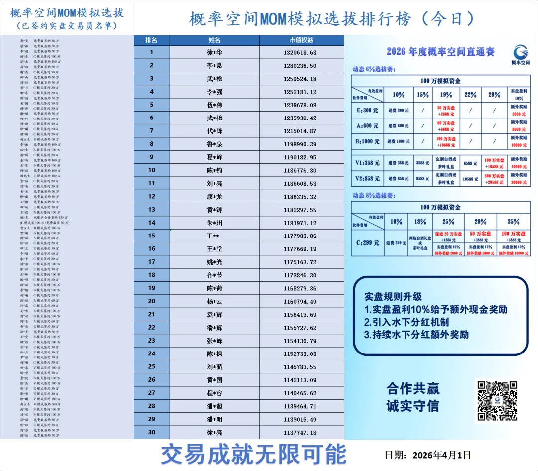 >2026/4/1选拔排行榜前30名