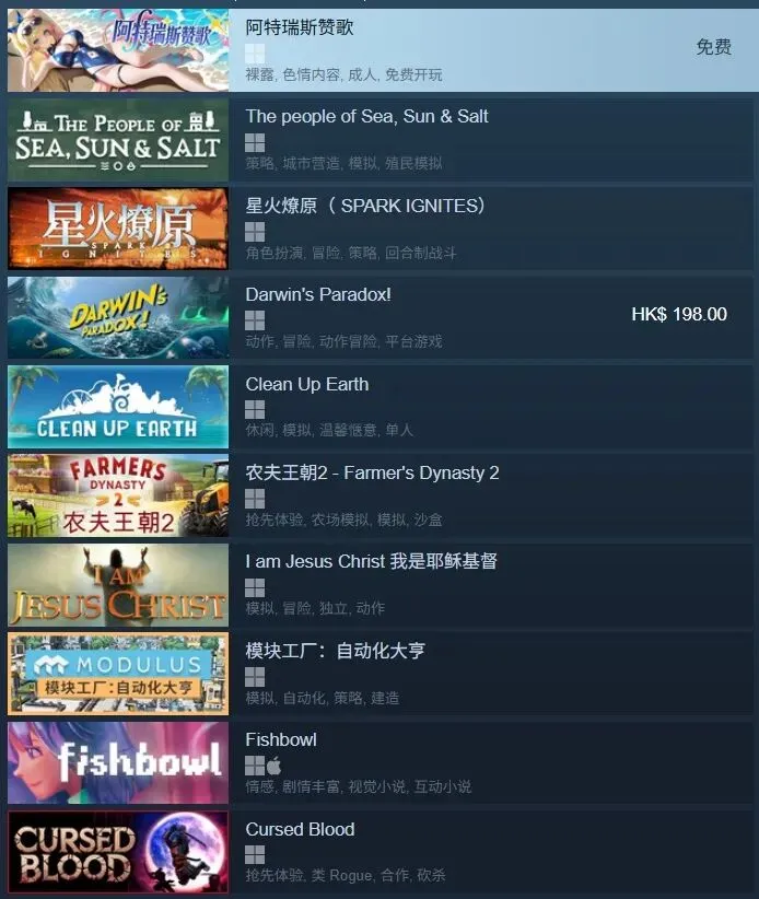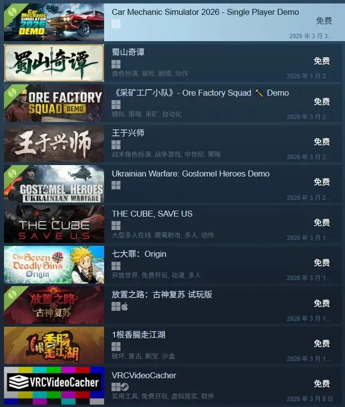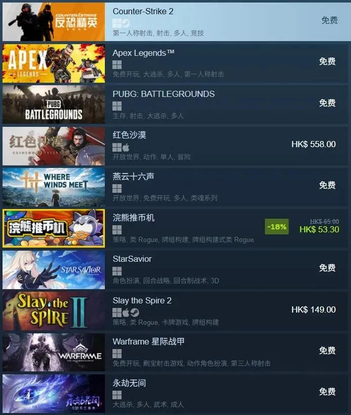 以下标签: "免费开玩", "多人", "单人", "独立", "抢先体验", "在线合作", "合作", "跨平台多人", "大型多人在线",未计入统计数据。
