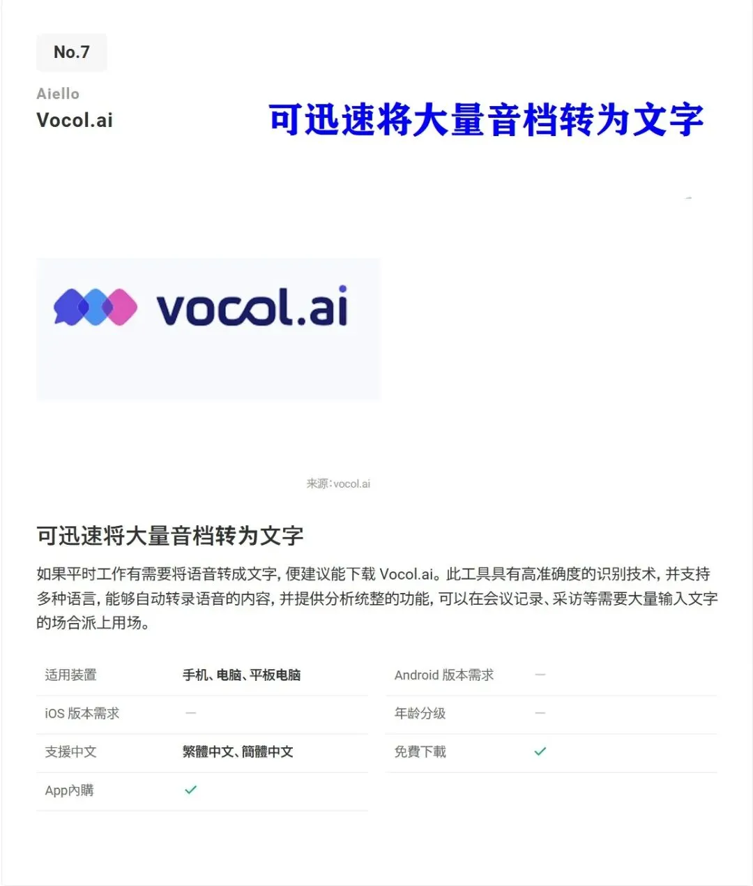 例如Gamma就是一款能够轻松制作PPT简报的AI程序,只要提供数据并勾选排列偏好,便会自动将幻灯片的文字、图片甚至特效完成,大幅缩短了初期的制作时间。另外,Vocal、Good tape 等是可以自动生成音档逐字稿的工具,为文字工作者省时省力的绝佳帮手。 但是此类 AI工具大多需要额外付费,且目前普遍的收费偏高,所提供的免费转档额度也不多,较不适合每天使用。