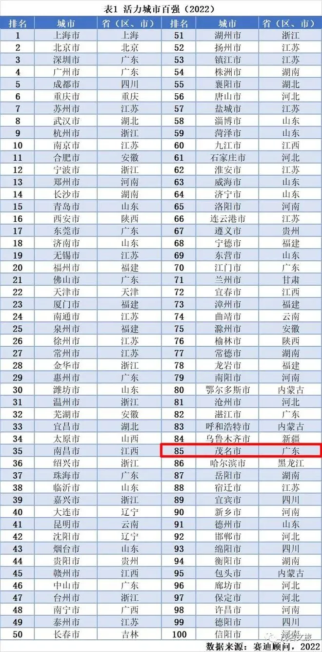 “活力”是城市发展潜力和核心竞争力的重要体现,更是城市高质量发展的不竭动力。赛迪顾问城市经济研究中心近日发布的《活力城市百强研究(2022)》报告,从经济活力、创新活力、人口活力、投资活力、消费活力、开放活力、交通活力和生态活力8个维度20项体现增长的指标,对我国地级和地级以上城市的发展活力情况进行了系统研究和综合评估。