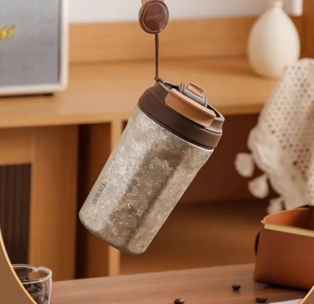 ②杯身工艺:磨砂面层触感柔和,不沾手汗,拿在手里质感清爽,不显廉价。无论是晨间咖啡馆还是午后公园,都能自然融入生活画面。