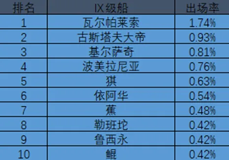 Ⅸ级船出场率排行
