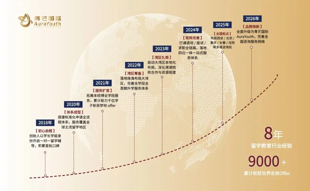 品牌正式全面升级为青芒国际 AuraYouth,锚定「留学赛道精品咨询」的核心定位,进一步完善全链路服务矩阵,以全新的品牌面貌、更成熟的服务体系,为每一位心怀热爱的学子,保驾护航奔赴世界的每一步。
