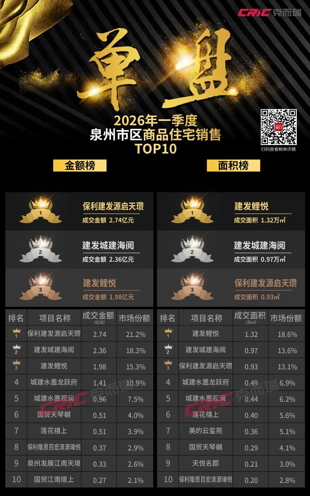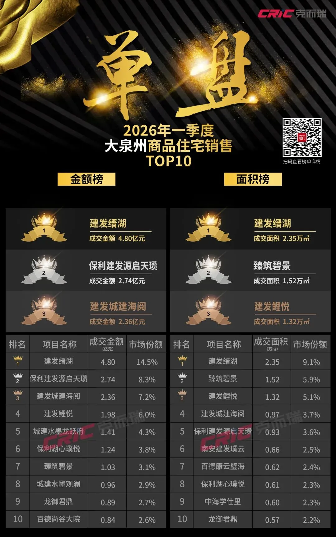 2.操盘榜数据口径:是以企业操盘为口径,即若某项目为多家房企合作开发,则该项目的业绩仅归入操盘企业;
