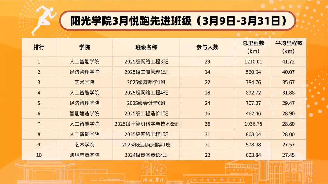 第二学期三月份“悦跑优秀学院”““悦跑先进班级”
