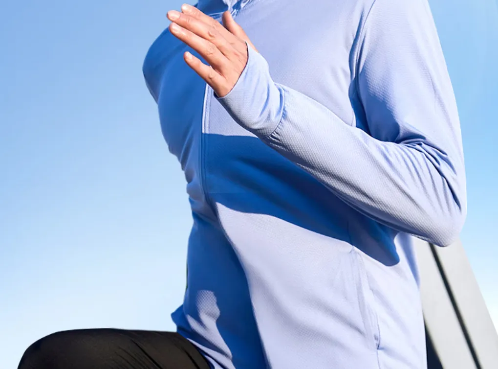 无缝冰袖贴合手臂,杜绝普通防晒衣袖口漏光问题,冰丝材质还能降温透气,兼顾防晒与舒适,手臂全程不被晒黑。