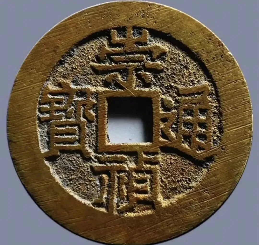 明代崇祯通宝,尺寸直径25.7mm,厚度1.0,重3.6g,成交价3102元。