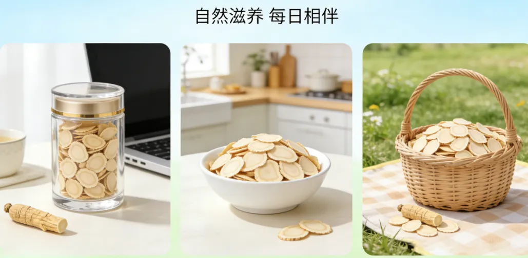 纯度、吸收率与工艺:为确保这份“道地”价值完整传递,品牌严格限定只采收5-7年参龄的参根。科学研究证实,此年限是人参皂苷、多糖等核心活性成分积累的黄金窗口。其采用的精密切片技术,将参片制成直径1.6-2.0cm的均匀薄片,这种形态设计旨在最大化溶出表面积,使得营养成分能以更高速度和更完全的程度析出,实现“高泡发率”和多次回冲,显著提升人体吸收效率。