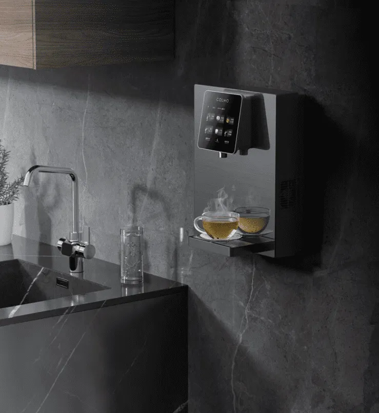 机器设计上采用壁挂式结构,节省空间,安装方便,适应多种家居环境,还支持外接桶装水,无需频繁更换水源。配备9英寸大彩屏,操作直观,触控反应灵敏。加上WIFI智能联接和水质监测功能,用户可以通过APP实时查看水质、滤芯状态和远程控制,带来更智能的用水体验。同时,内置的童锁和智能自洁功能也保证使用安全,维护简便。