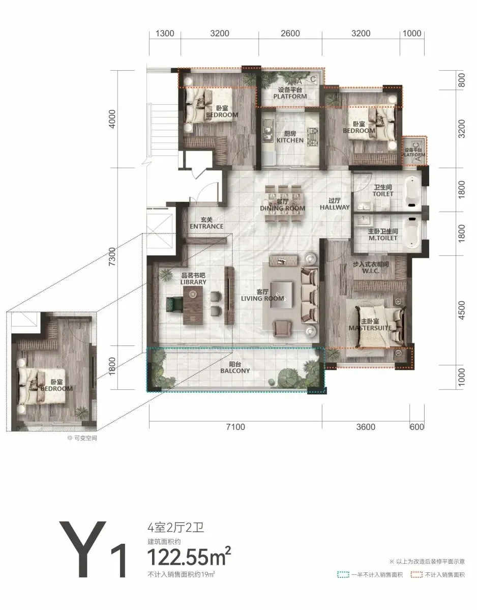 3.本宣传资料所涉及的户型仅供示意参考,其装修、家具、陈设等非交付标准,不属于交付范围。不同户型的面积尺寸,功能布局,空间分割、门窗/管井形态位置等均有不同;相同户型因楼栋、楼层、单元等差别,局部结构、面积、尺寸等也可能不同,具体以政府部门最终审定的图纸和销售合同为准。