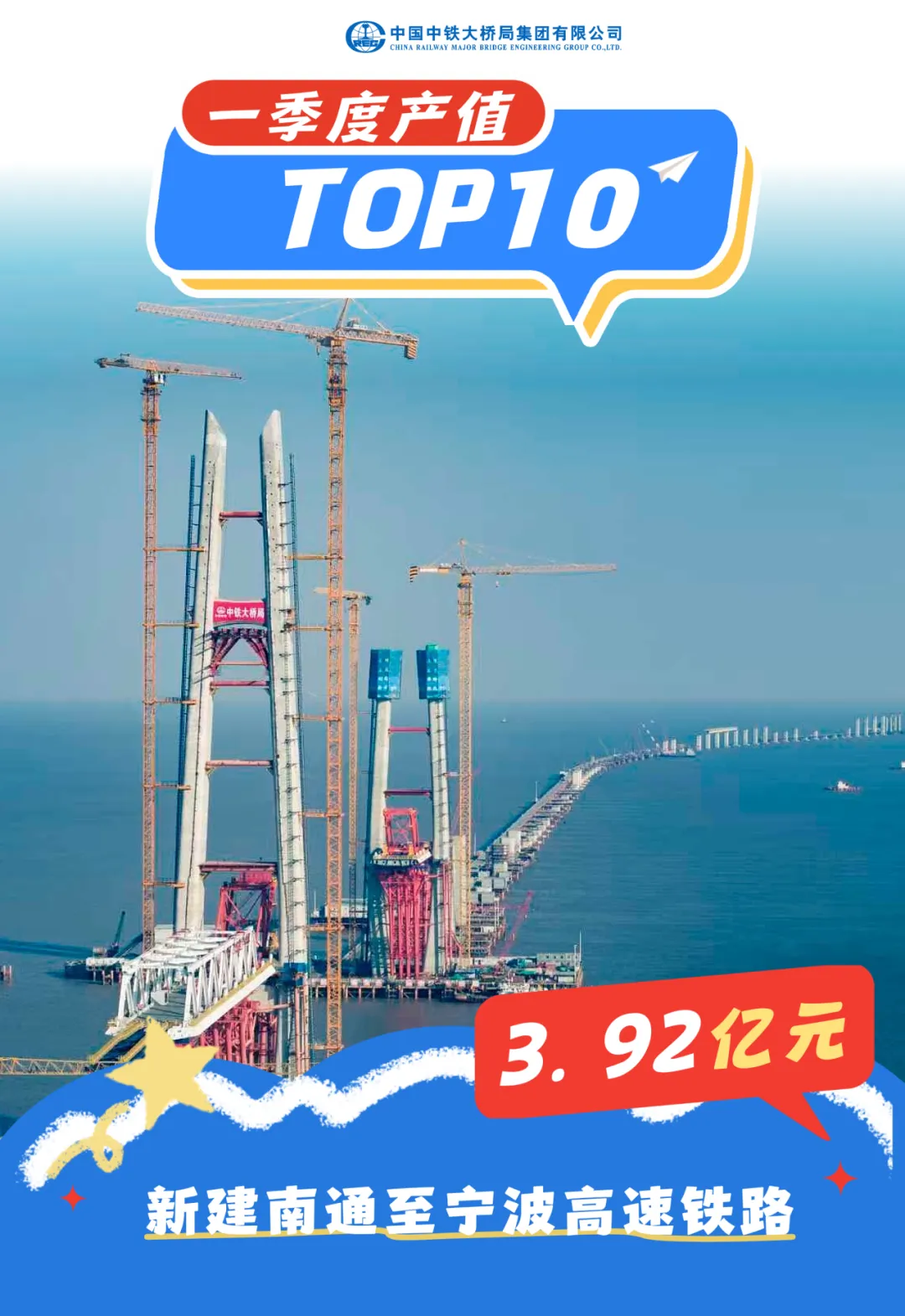 新建南通至宁波高铁是我国“八纵八横”高铁网沿海通道的重要组成部分。杭州湾跨海铁路桥是其控制性工程,全长29.2公里,采用时速350公里的双线无砟轨道设计,是目前世界上在建长度最长、建设标准最高的高速铁路跨海大桥。中铁大桥局承建的TYZQ-3标段总长9.844公里,主要包括跨北大堤引桥、北航道桥、北航道桥至中航道桥之间海中引桥、中航道桥、中航道桥至南航道桥之间紧邻中航道桥的第一联海中引桥。