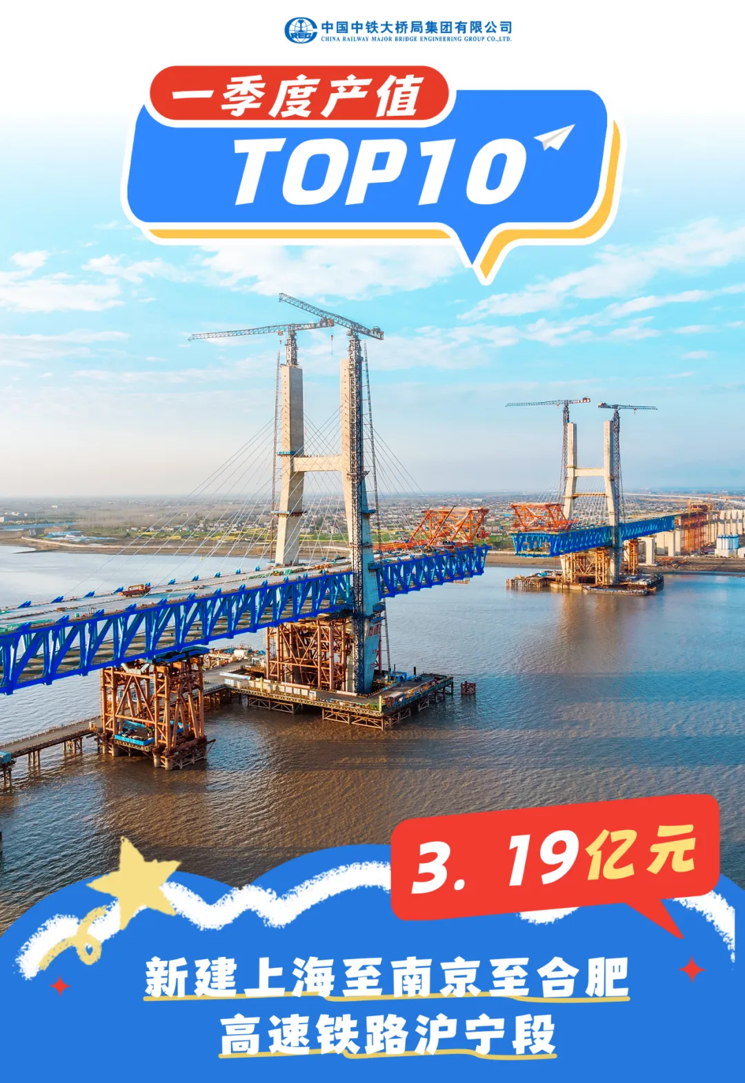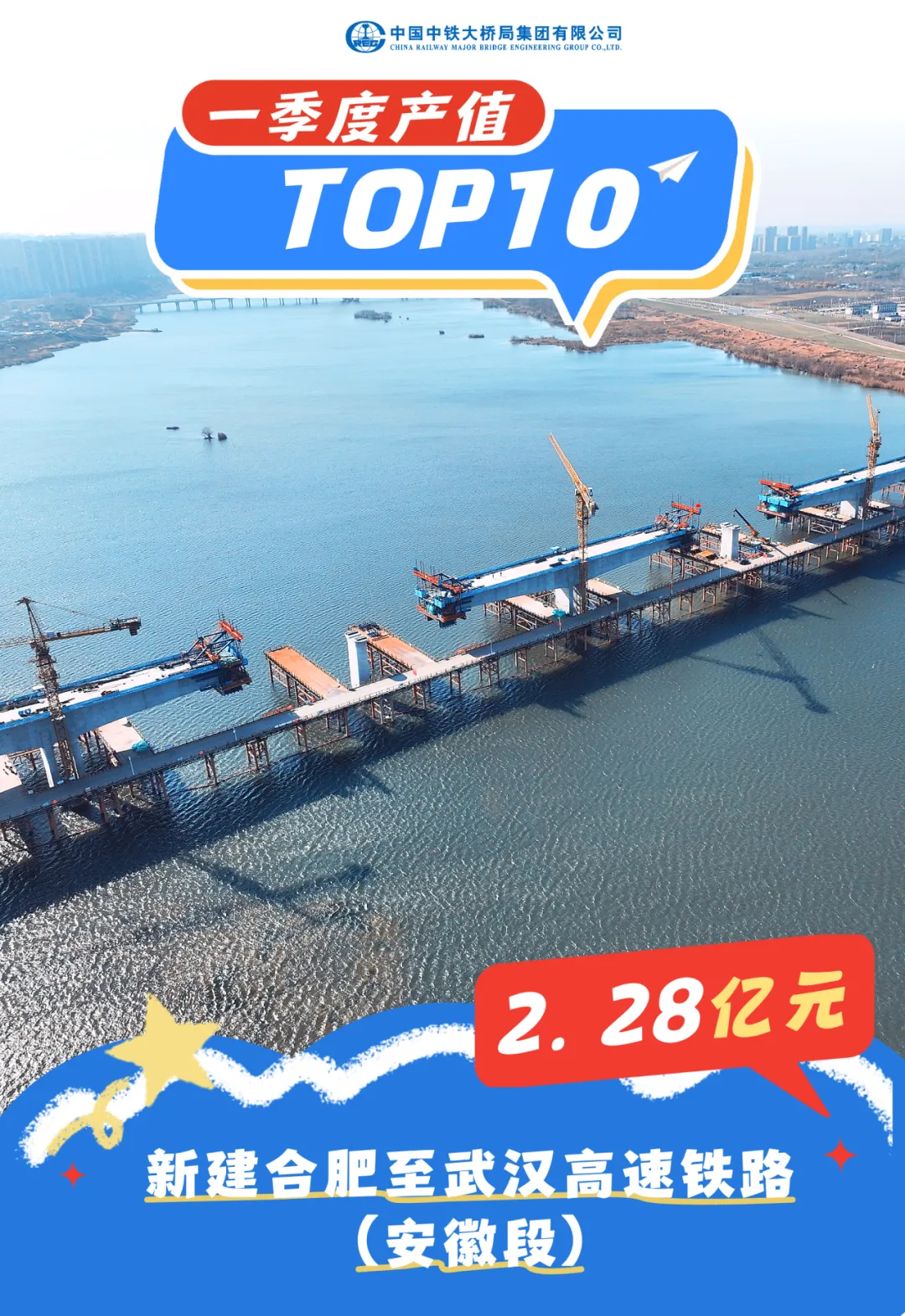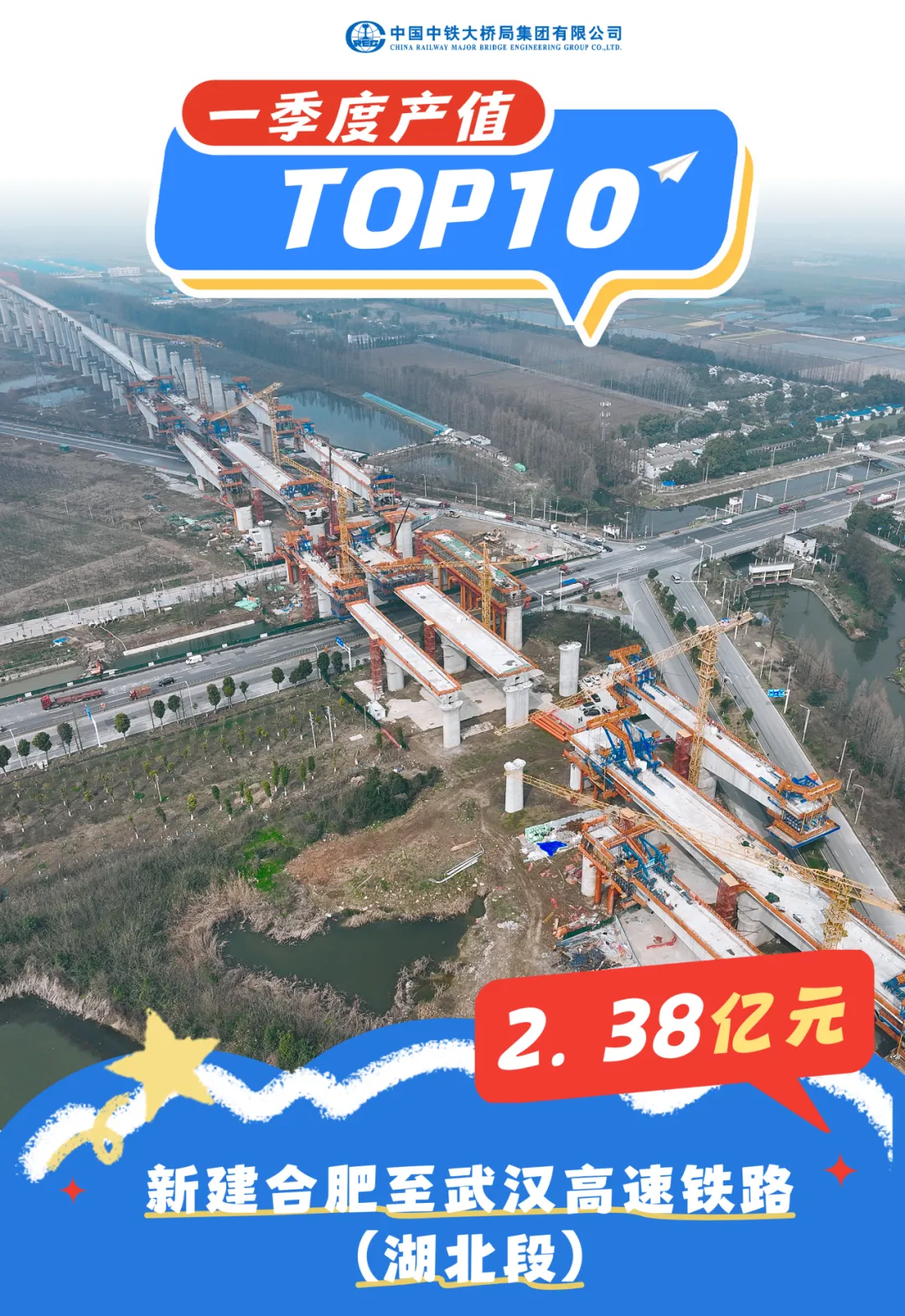 由中铁大桥局承建的新建合武高铁安徽段2标段桥梁长度38.217千米,路基长度0.807千米,包含金裕淠河特大桥、木勺井特大桥、汲东特大桥、关山特大桥、4号李家庄梁场、区间四电房屋等内容的建设。