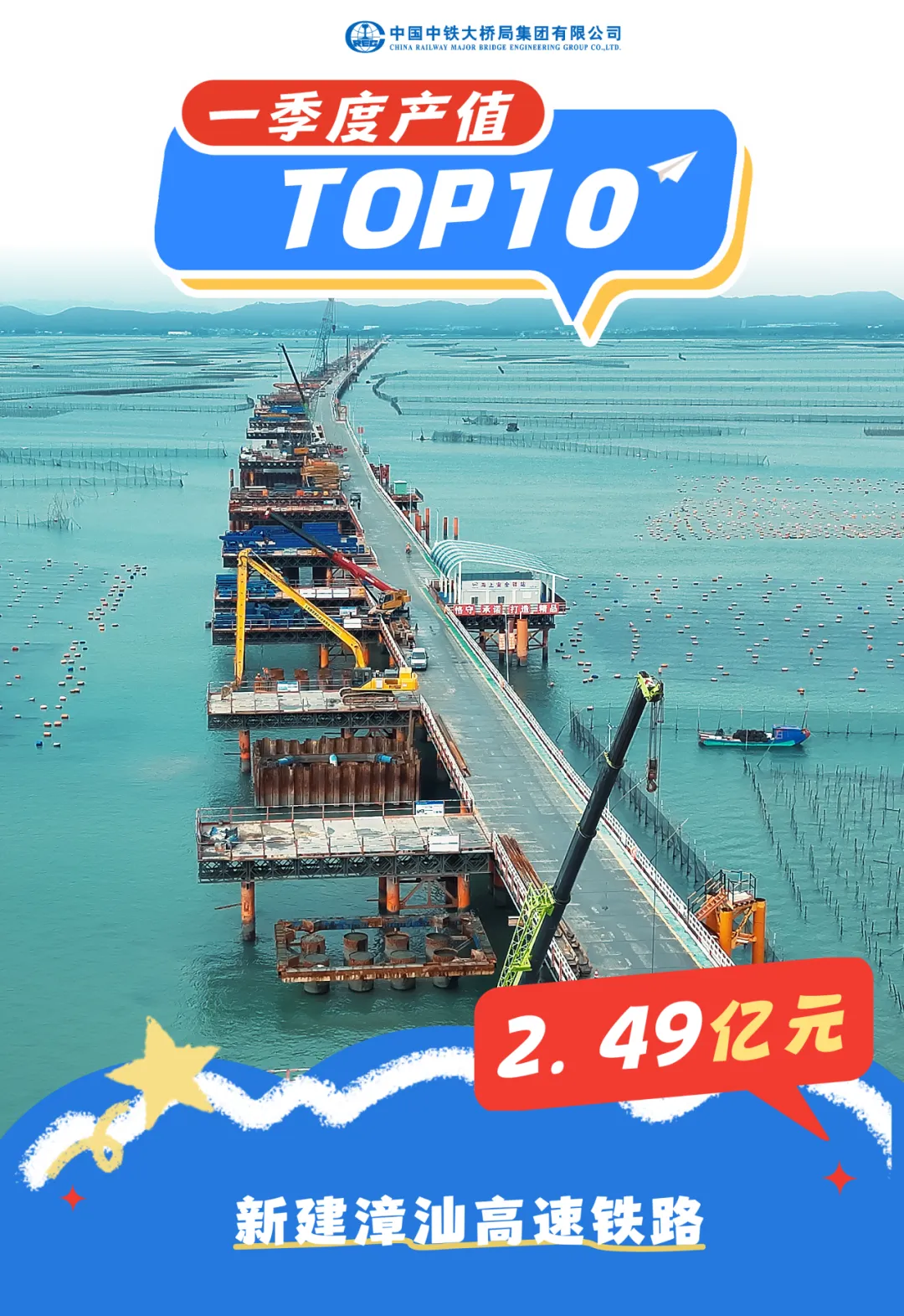 漳汕高铁是国家“八纵八横”高速铁路网沿海通道的重要组成部分。中铁大桥局承建的漳汕站前4标标段总长29.195千米,其中桥梁22.266千米,路基2.804千米,隧道4.125千米,桥隧占比90.4%。