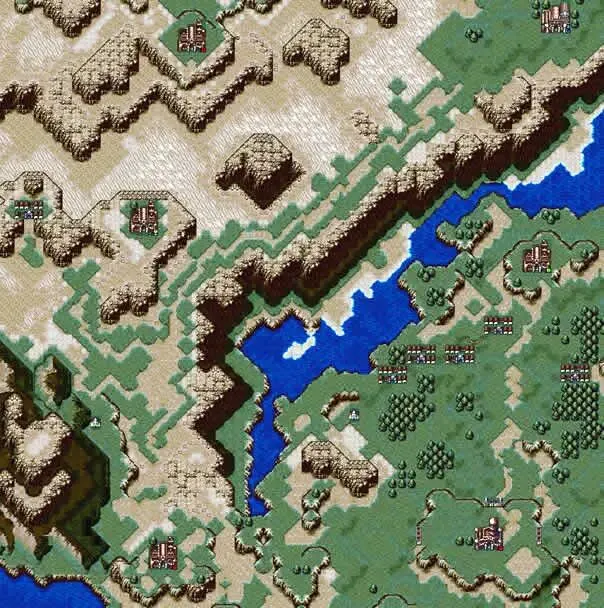 | 重要武器道具: セリス→パルマーク,ティルフィング。 セリス亲自杀掉アルヴィス后于,图中所示处待机,遇见父母,并得到ライブのうでわ。 ラドス城左上方村子,マジックリソグ。 |