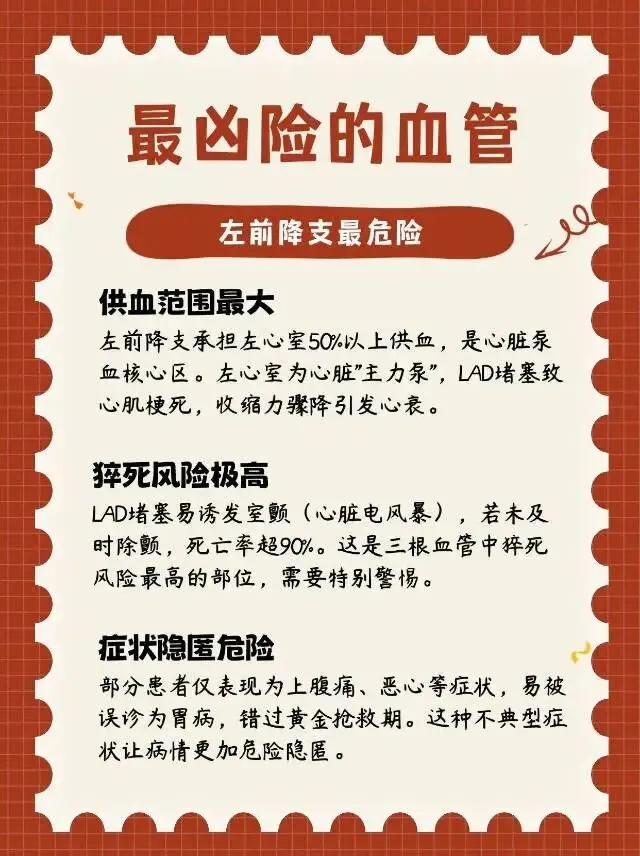 * 堵塞后果:当冠状动脉因斑块或血栓堵塞时,心肌就会缺血缺氧。轻度堵塞会引起心绞痛,表现为胸闷、胸痛;如果斑块突然破裂形成血栓,瞬间完全堵死血管,就会导致急性心肌梗死(心梗),心肌细胞会迅速坏死,随时可能危及生命。