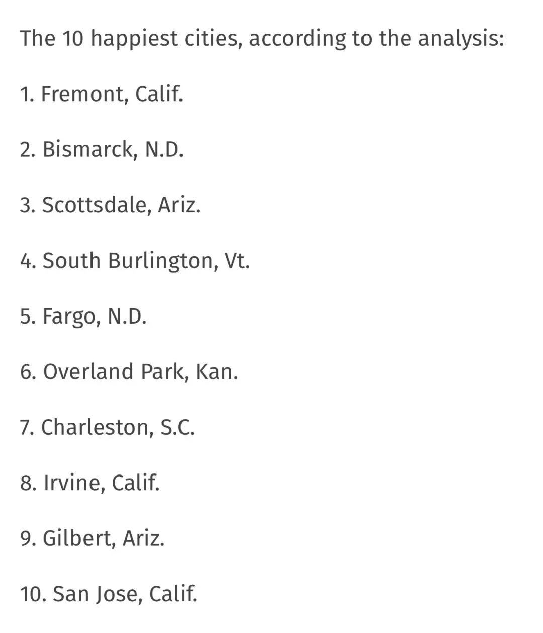 看完榜单我的第一个反应:为什么加州这么多幸福城市?