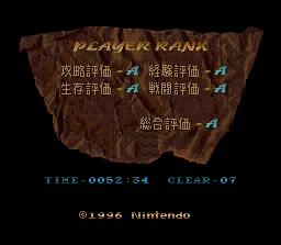 在通关后,大家会看到长长的结局,在出现Fin之后按A键,开始显示个人战绩记录,最后会给出评价,分为战斗评价、生存评价、攻略评价、经验评价和综合评价,以5个A为最高级别。