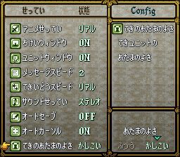 通关看完评价之后,按RESET键或者SECLET+START+L+R复位,再开始游戏就会发现在config(コンフィグ)选项中多了一项选择てきのあたまのよさ(见下图),其中第一项为普通,第二项为聪明,敌人的AI会大幅提升!