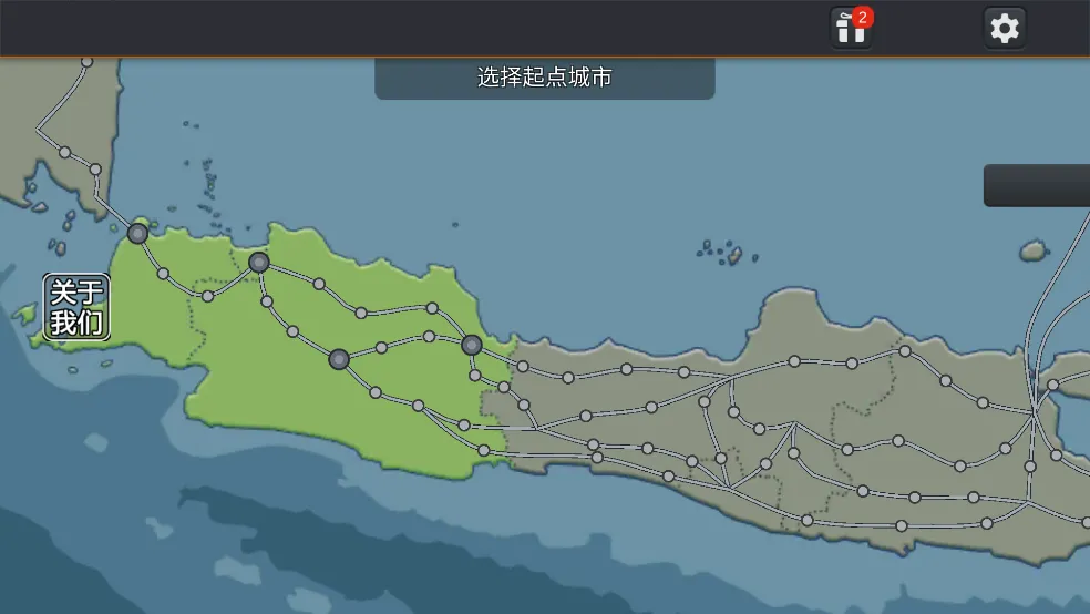 2、现在玩家即可规划出发城市以及目的地(只能选择绿色区域,其它区域需要陆续解锁才能选择);