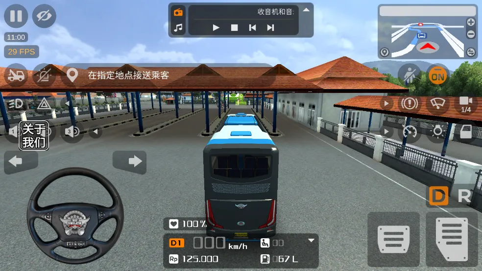 4、现在玩家即可进入城市开始驾驶巴士,根据右边的地图蓝色的路线进行驾驶即可。