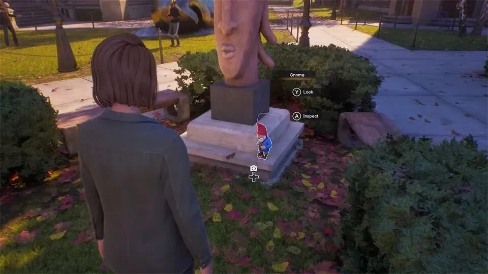 当你在庭院里寻找萨菲时,可以找到一个小矮人拍张照片。它就在珍妮特所在的那片草地上。你可以在那座人脸雕像旁找到它,就在之前场景中乌鸦出现的位置旁边。