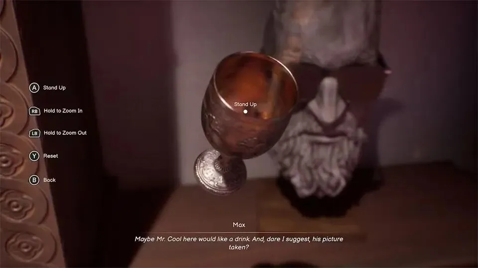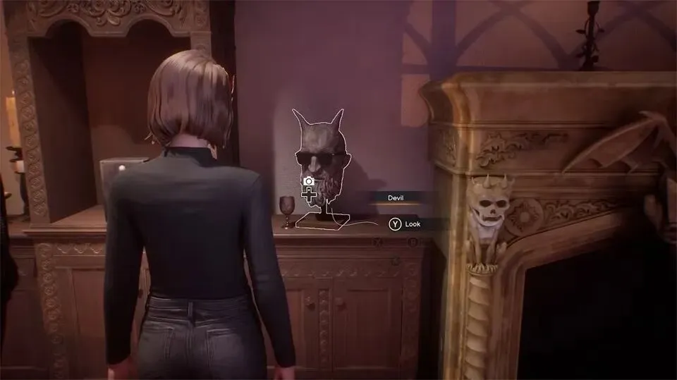 在马邦派对上,一进入阿布拉克斯斯宅邸,向左走即可找到一个壁炉。壁炉旁有一尊恶魔半身像和一只高脚杯。检查高脚杯并移动它,直到出现将其竖立起来的选项。然后,给高脚杯旁边的恶魔拍张照片。
