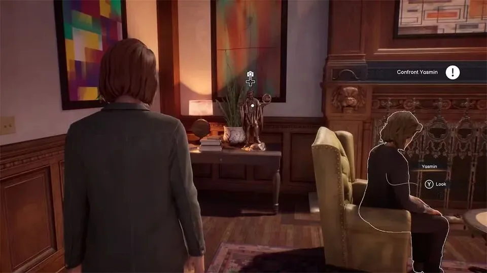 进入办公室与雅斯敏对质后,向左看会发现一座小雕像。它放在桌子上,就在雅斯敏座椅的旁边。给它拍张照片。