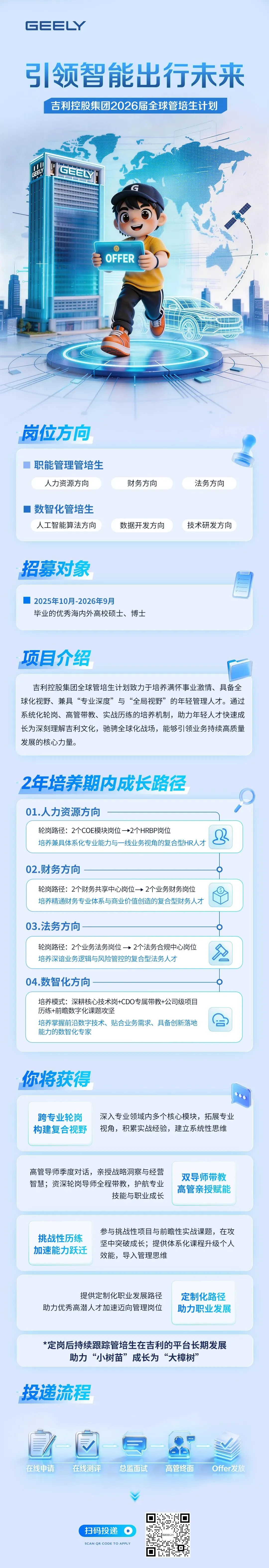 >吉利控股集团(世界500强、总部杭州)2026届全球管培生计划