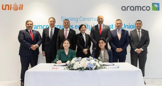 沙特阿美(Aramco)收购尤尼石油(UniOil)股权的签约仪式现场照片,图片来源:Aramco官网