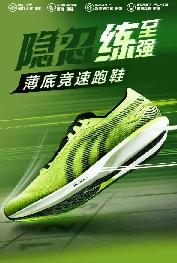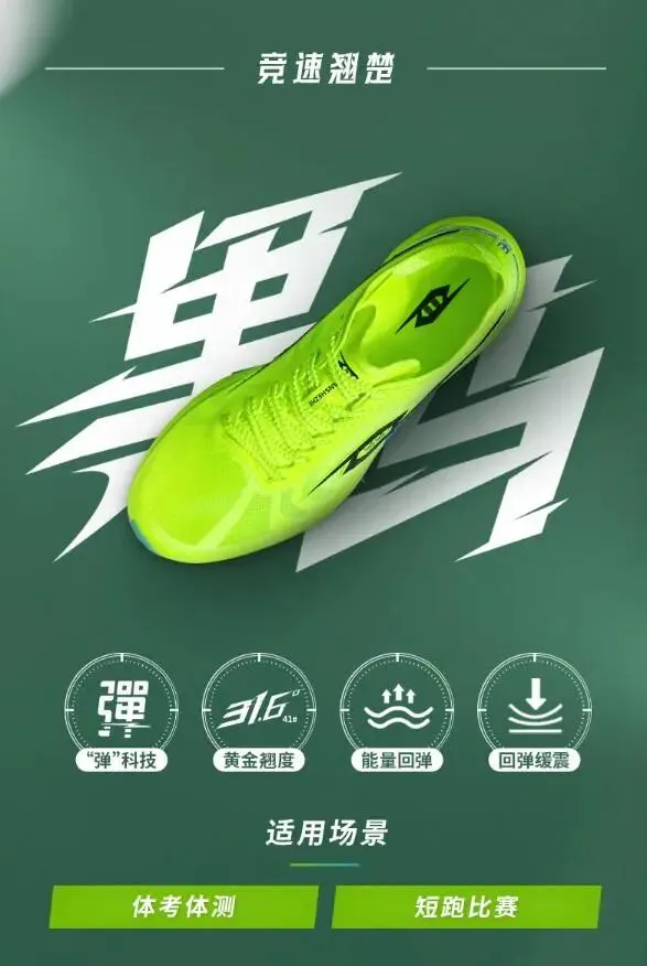 这款绝对是体考党的本命鞋,专门为中考体测量身打造,闪电白配色干净清爽,穿去考场既合规又吸睛,拍照发圈也倍有面儿。全掌碳板加持,蹬地发力时反馈特别直接,跑800米、1000米时能明显感觉到助推感,不用费太大力气就能保持匀速,避免最后冲刺乏力的尴尬。鞋面是透气飞织材质,夏天训练久了也不闷脚、不闷汗,脚汗多的同学穿一天也能保持干爽,而且鞋型偏窄,官方建议拍大一码,按建议选尺码,包裹性刚刚好,不挤脚也不晃脚。现在活动力度拉满,领券立减50,到手不到400块,对于预算有限的学生党来说,性价比直接拉爆,花小钱就能拿下体考神器。