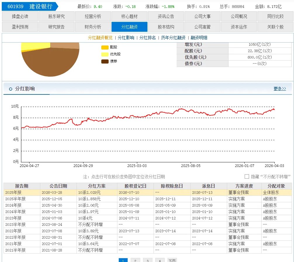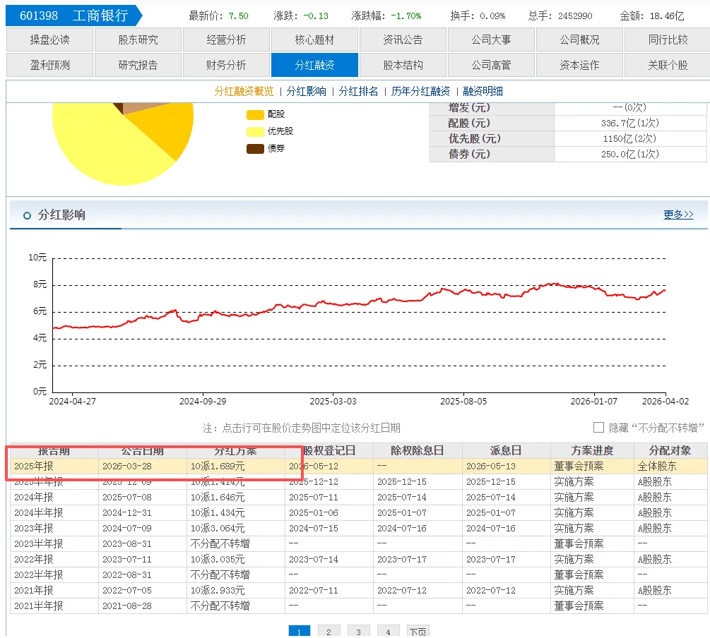 其中工商银行分红601.97亿,每股派1.689元。稳稳的分红一哥。