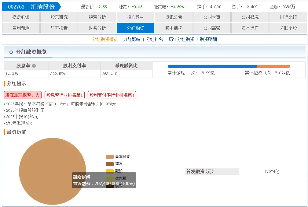 汇洁股份,股息率达到 14.3%,排名第一。