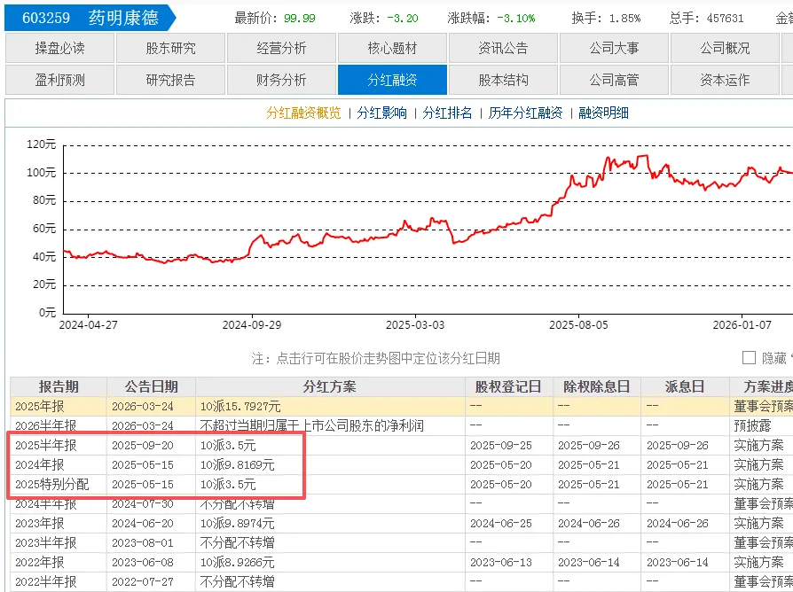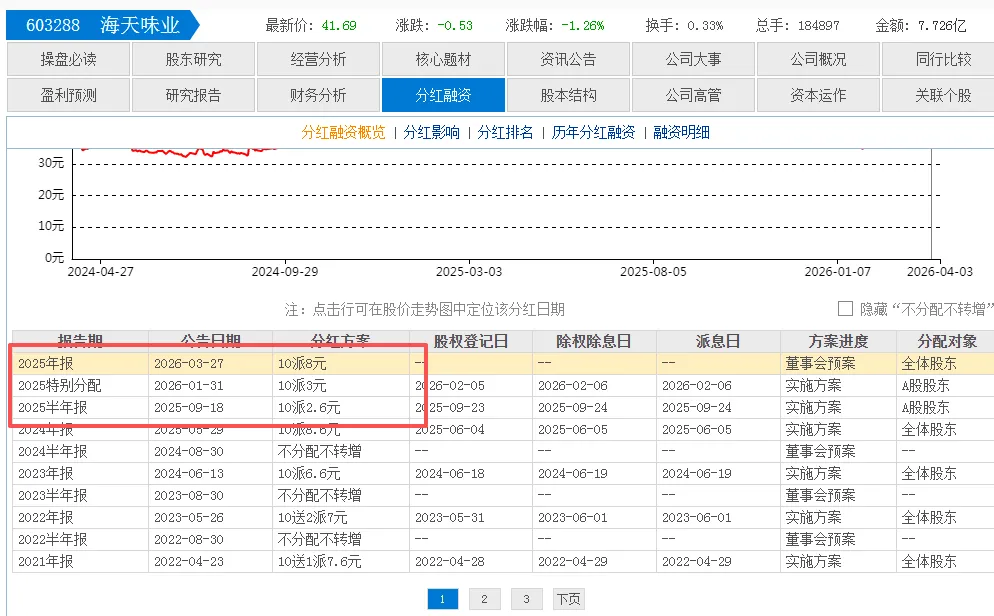 还有海天味业、药明康德这些,也都有3次分红。